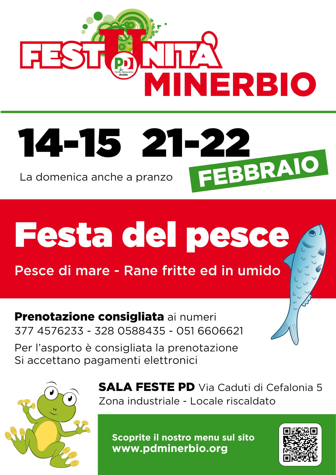 La prossima Festa dell’Unità con menu di pesce di mare, rane fritte ed in umido si terrà i giorni